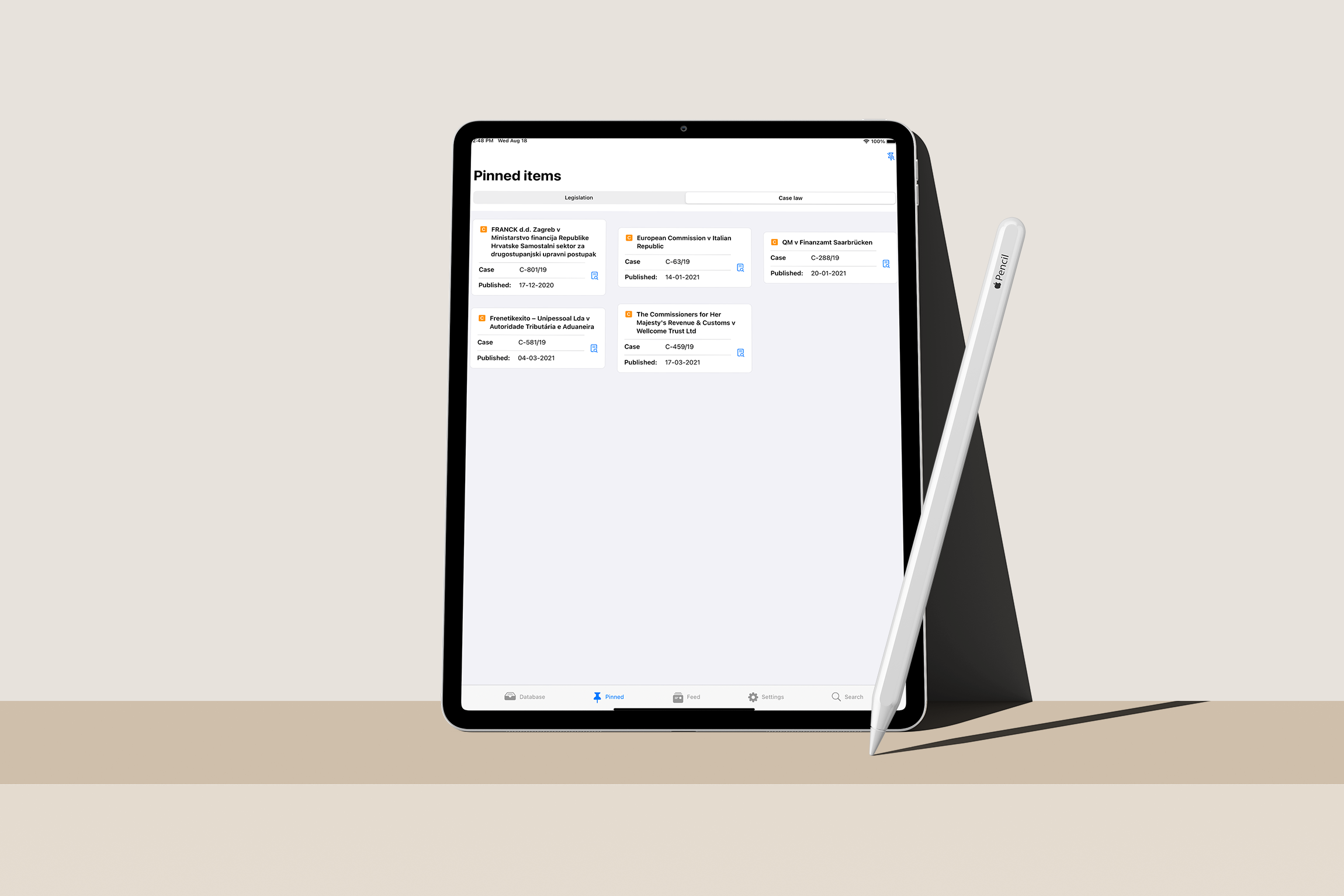 The app contains links to external websites, including EUR-Lex, the Court of Justice of the European Union (CVRIA), and selected legal blogs. When opening these links, content is loaded directly from the original website in an in-app browser or external browser.